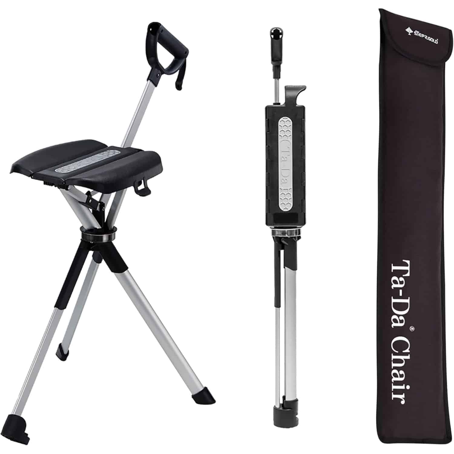 De STEP2GOLD Ta-Da Chair Series 2 PRO vertegenwoordigt het hoogste niveau van vakmanschap in wandelstokken met zitje. Dit premium model onderscheidt zich door zijn innovatieve snap-to-seat conversie die directe verlichting biedt tijdens wandelingen of hikes. De combinatie van functionaliteit en comfort maakt deze stok tot een uitzonderlijke keuze voor outdoor enthousiastelingen.